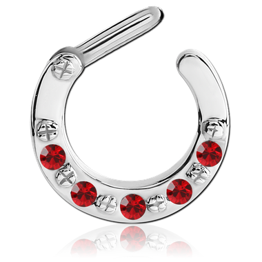 Hinged Light Siam Crystal Septum Clicker in Surgical Stainless Steel