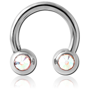 Aurora Borealis Crystal Horseshoe Circular Barbell in Surgical Stainless Steel